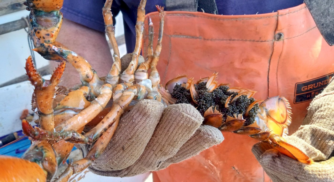 Apart from measuring the backs of males and non-breeding females (they can't be kept if less than 3 and a quarter inches), any female with eggs is returned.